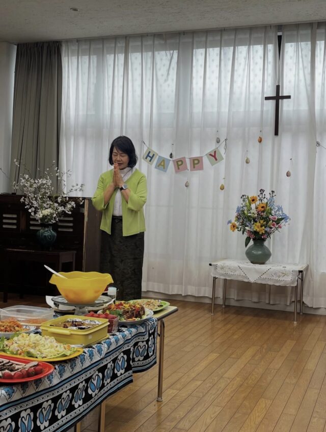 聖餐の恵みに与り、礼拝後には皆さんで教会の桜の木下で写真を撮り、祝会の楽しい時間を持ちました。