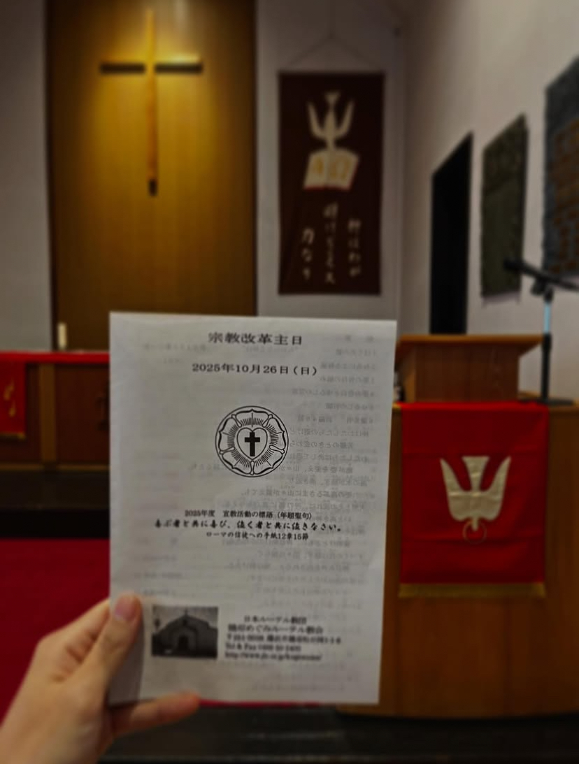 2025年10月26日(日) 宗教改革主日 皆様こんばんは🌙 突然寒くなりましたが、昨日と今日は少し秋らしい良いお天気に恵まれましたね🍂 先日は宗教改革主日の礼拝が行われました。教会の…